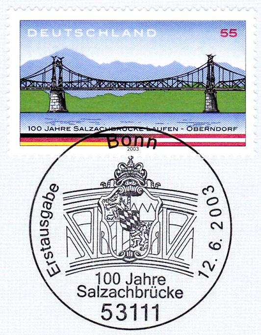 Hier zeige ich jeweils eine Marke mit einem Ersttagsonderstempel.