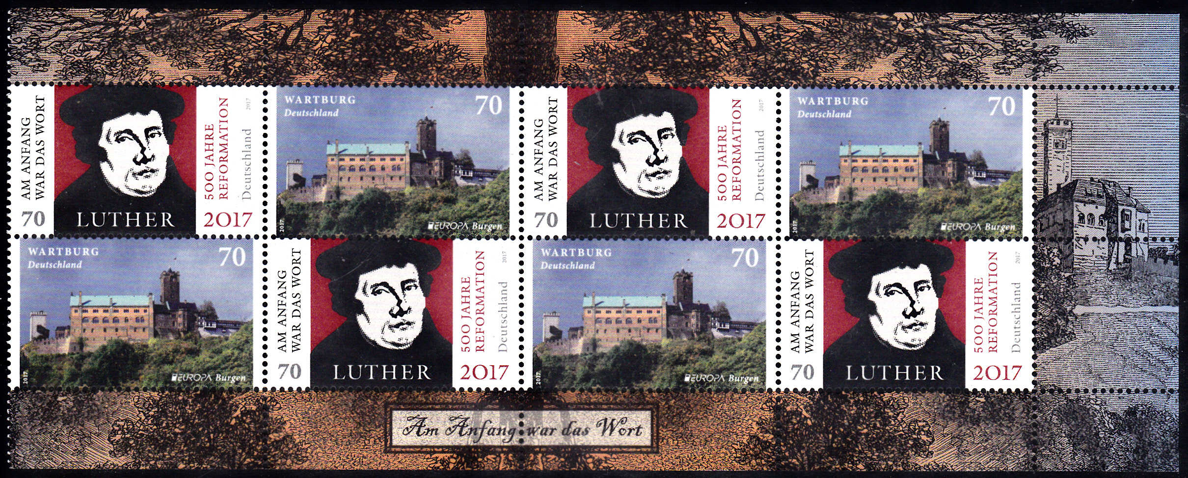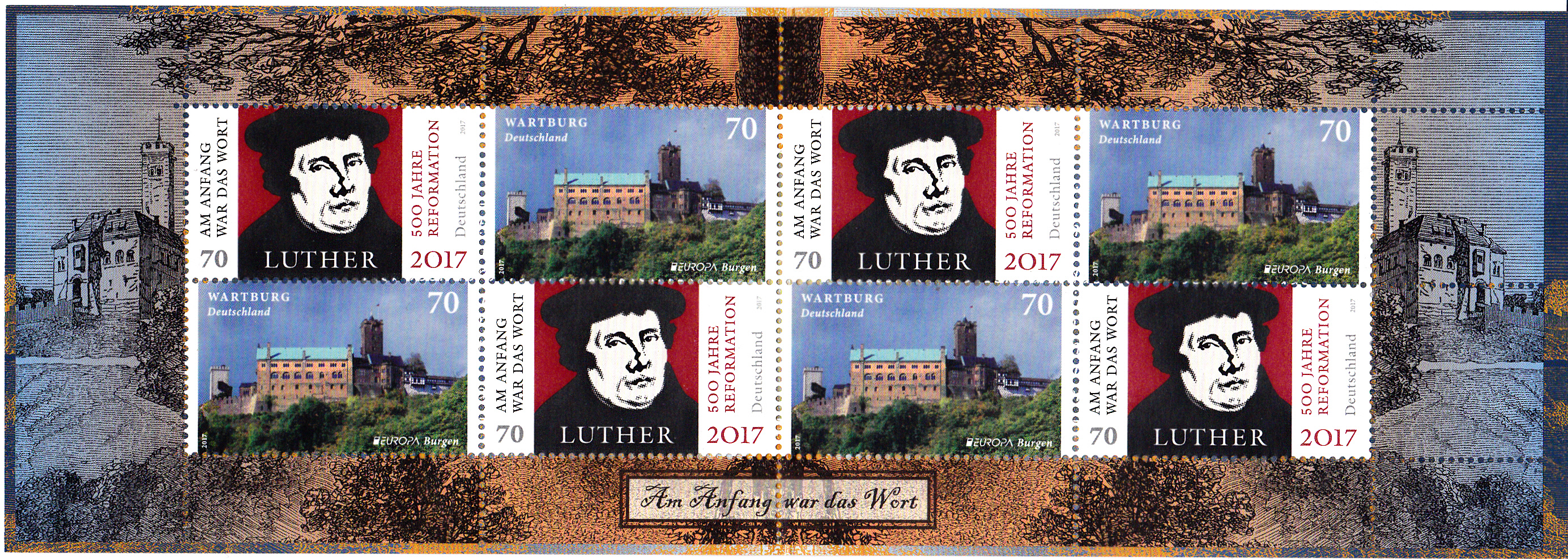 Die nassklebende Europamarke 2017 der Deutschen Post AG (MiNr 3310) wurde ab 10. August 2017 zusammen mit der Marke zum Thema "500 Jahre Reformation" vom 13. April 2017 (MiNr 3300) in einem Markenheftchen (MiNr MH 107) nur über die Postphilatelie Weiden verkauft.