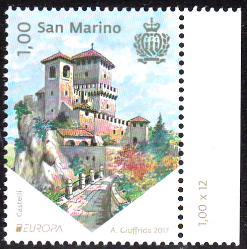 Am 7. März 2017 erschienen in San Marino die Europamarken zum Gemeinschaftsthema "Burgen und Schlösser". Die Marke zu 1,00 € zeigt den Guaita-Wehrturm des Monte Titano. Die Marke ist in einer Auflage von 60 000 Stück erschienen. Die Marke ist im 12er-Bogen erschienen, wie auf dem Bogenrand zu lesen ist.