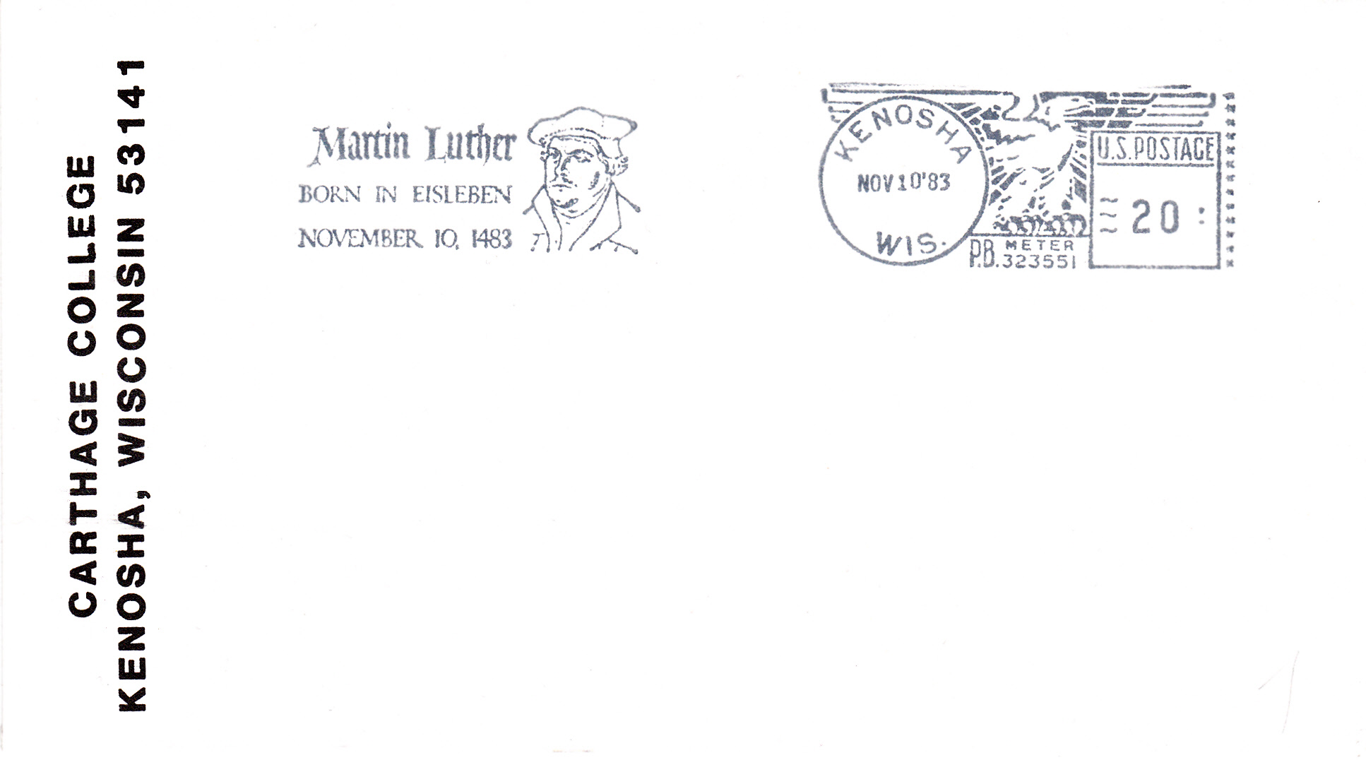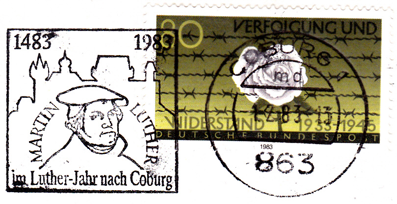 In diesem Sonderstempel vom 25.6.1983 aus Nürnberg zu einer Ausstellung "Martin Luther und die Reformation in Deutschland" zeigt eines der bekannten Lutherporträts.