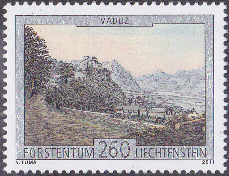 Aus Liechtenstein kommt diese Marke (MiNr 1613) mit dem Schloss Vaduz.
