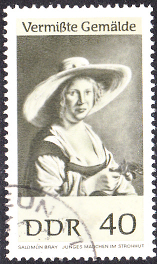Diese Marke der DDR (MiNr 1290) zeigt das Gemälde "Junges Mädchen im Strohhut" von Salomon de Bray (1597 - 1664; holländischer Maler, Baumeister und Dichter)