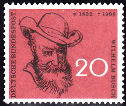 Wilhelm Busch trägt auf dieser Marke der Deutschen Bundespost (MiNr 282) einen breitkrempigen Hut.