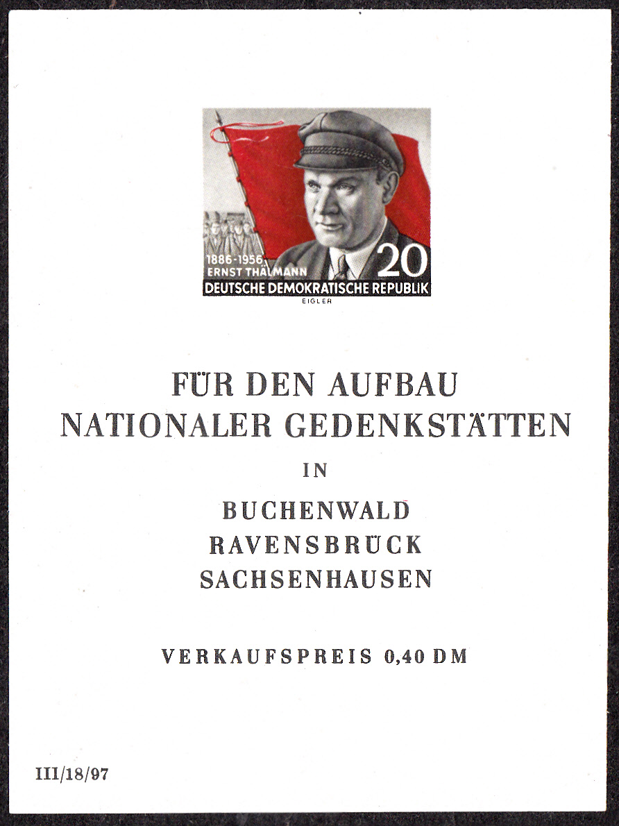 Und diese Marke der DDR (MiNr 520 A) zum 70. Geburtstag von Ernst Thälmann zeugt ihn mit der gleichen Schirmmütze.