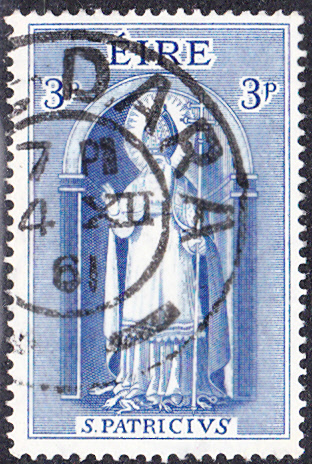 Auf dieser Marke Irlands (MiNr 150) der heilige Patrick von Irland mit einer Mitra gezeigt.