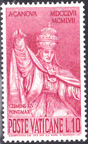 Es folgt eine Marke aus dem Vatikan (MiNr 297) mit Papst Klemens XIV. (1705-1774). Seine Kopfbedeckung auf dieser Marke ist sicherlich auch unter dem Thema Mitra einzuzordnen.
