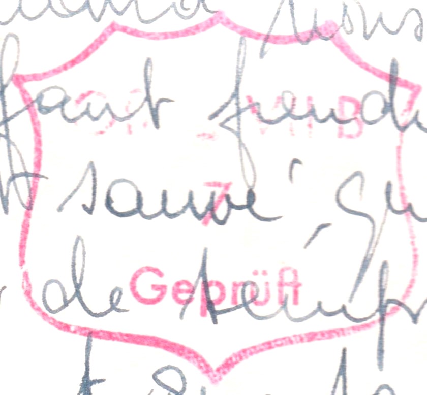 Vorderseitig sowie rückseitig erfolgte eine chemische Zensur mit verschienen Chemikalien durch diagonale Pinselstriche.