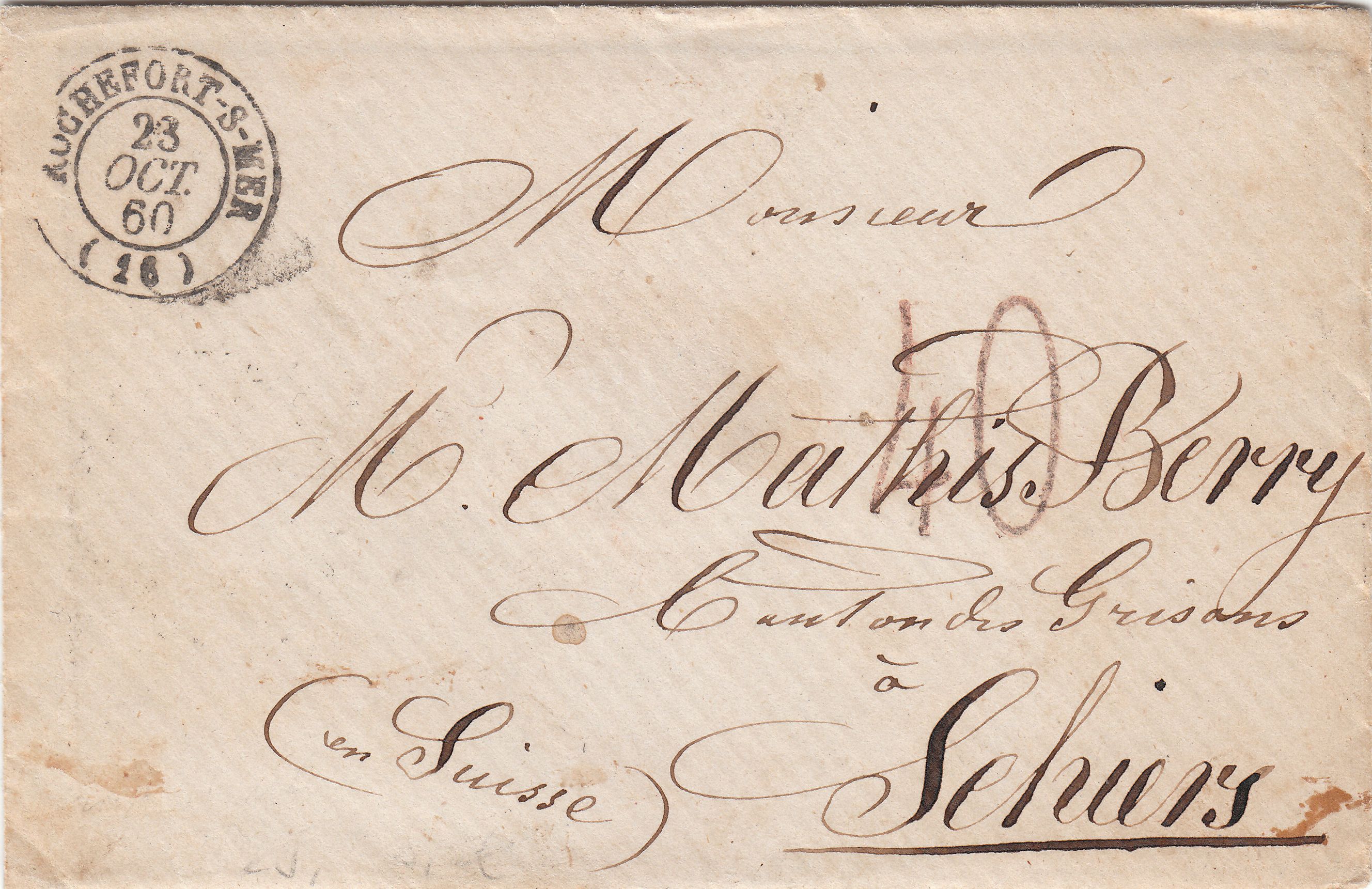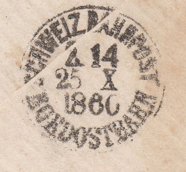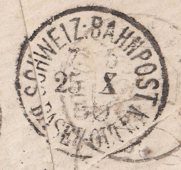 Hier ein interessanter Brief, der in der Schweiz per Bahnpost befördert wurde, was man an entsprechenden Stempeln erkennt, die auf der Rückseite als Durchgangsstempel abgeschlagen wurden:
