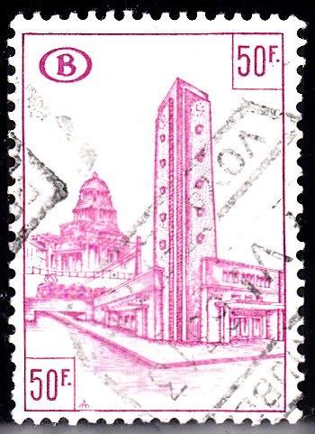 Auch der alte Bahnhof Brüssel Süd wurde hier bereits gezeigt. Diese Eisenbahnpaketmarke zu 50 Francs (MiNr 315) zeigt den 1959 eröffneten neuen Bahnhof Brüssel Süd.