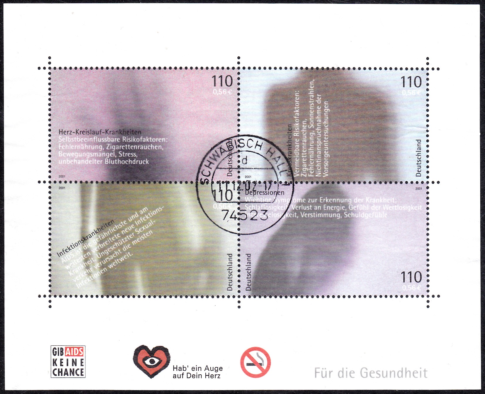 Bei der Deutschen Post ist 2001 eine Marke (MiNr 2202) in einer Blockausgabe "Gesundheit" erschienen, die auf die gefährlichste Infektionskrankheit AIDS hinweist.