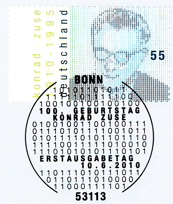 Zum 100. Geburtstag von Konrad Zuse erschien bei der Deutschen Post eine Marke (MiNr 2802) mit seinem Porträt.