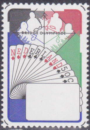 Zur Bridge-Olympiade von 1980 erschien in den Niederlande diese Marke (MiNr 1163) mit einem Kartenspiel und Spieler.