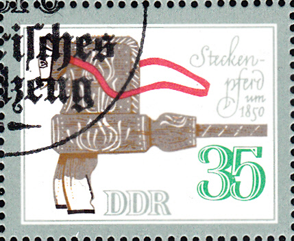 Ein Steckenpferd aus der Zeit um 1850 ziert diese 35Pf-Marke der Serie (MiNr 2665).
