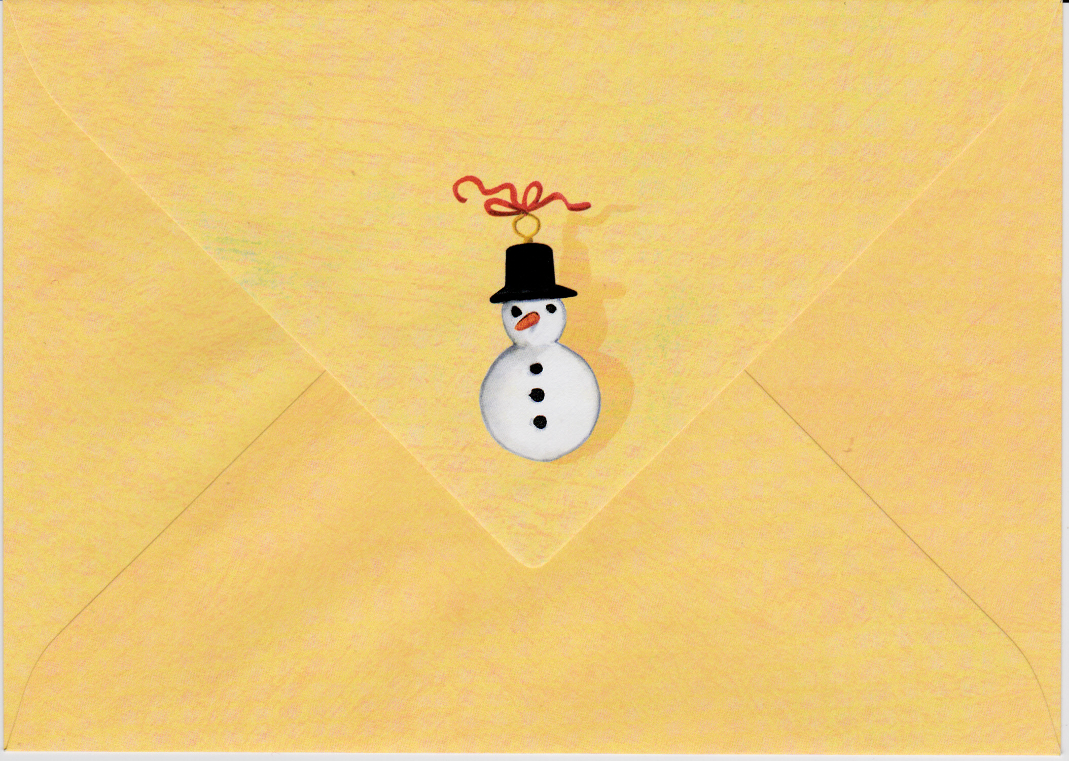 Auf dem dritten Plusbrief mit dem Werteindruck "Freude schenken" werden eine Kugel und ein Schneemann als Weihnachtsbaumschmuck gezeigt.