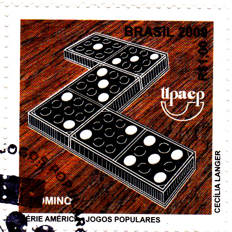 Diese Marke aus Brasilien (MiNr 3658) zeigt uns Dominosteine.