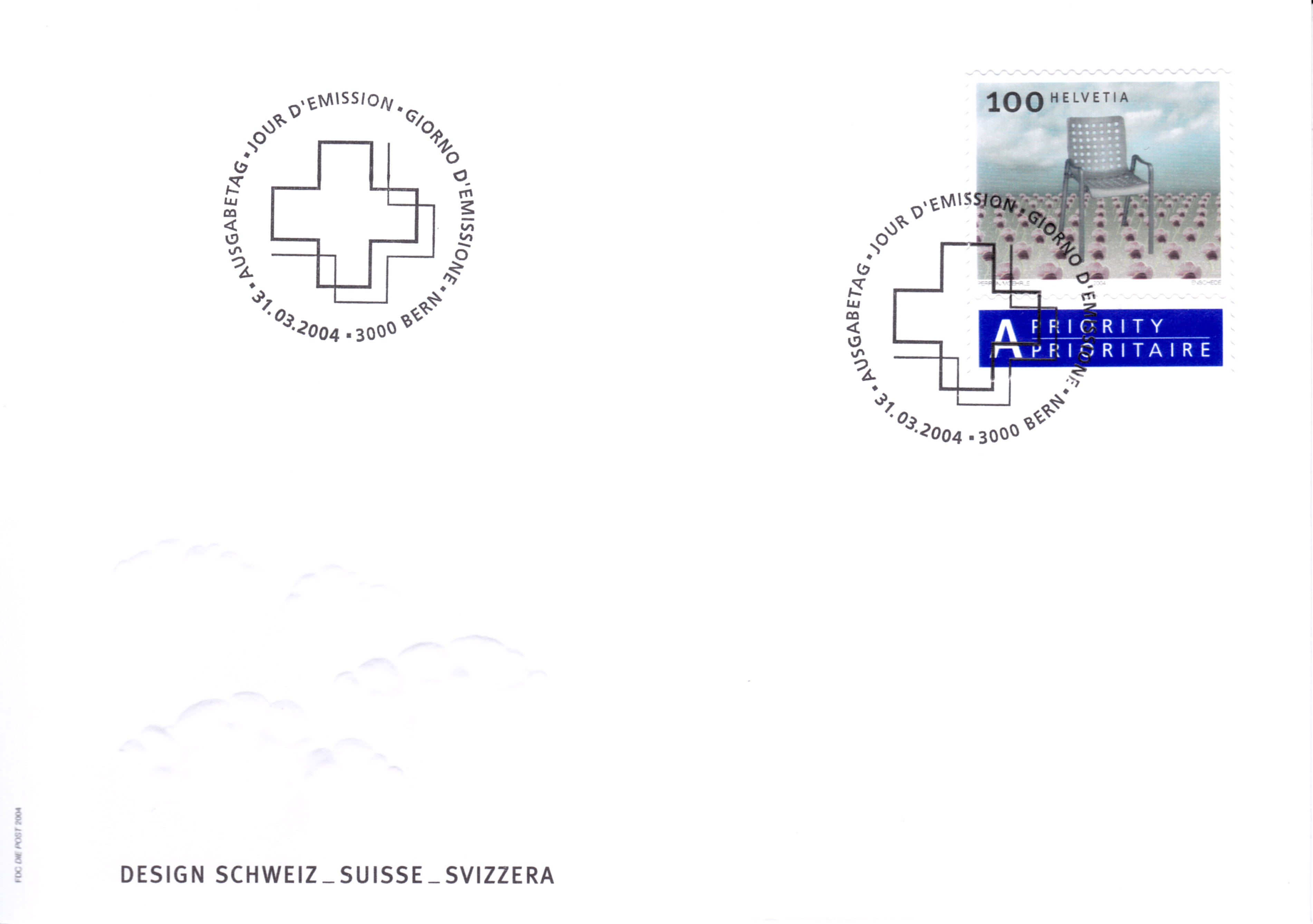 FDC der Post der Schweiz mit der bereits gezeigten Marke (MiNr 1873) mit dem Landi-Stuhl nach einem Entwurf von Hans Coray.