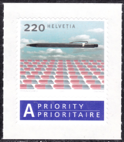 Eine weitere Marke der Serie "Design-Klassiker der Schweiz" (MiNr 1928) zeigt einen Bleistiftminenhalter "Fixpencil" nach der Erfindung von Carl Schmid.