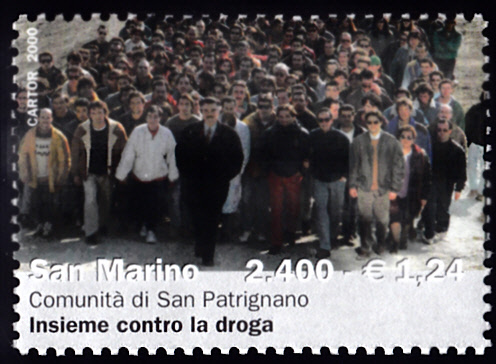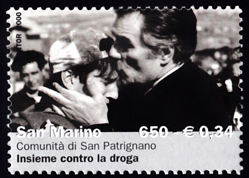 In San Marino erschien im Jahre 2000 eine Serie "5 Jahre internationale Anti-Drogen-Vereinigung 'Rainbow', 22 Jahre nationale Anti-Drogen-Vereinigung 'San Patrignano'". Eine Marke dieser Ausgabe (MiNr 1890) bildet den Gründer der San-Patrignano-Vereinigung Vincenzo Muccioli ab.