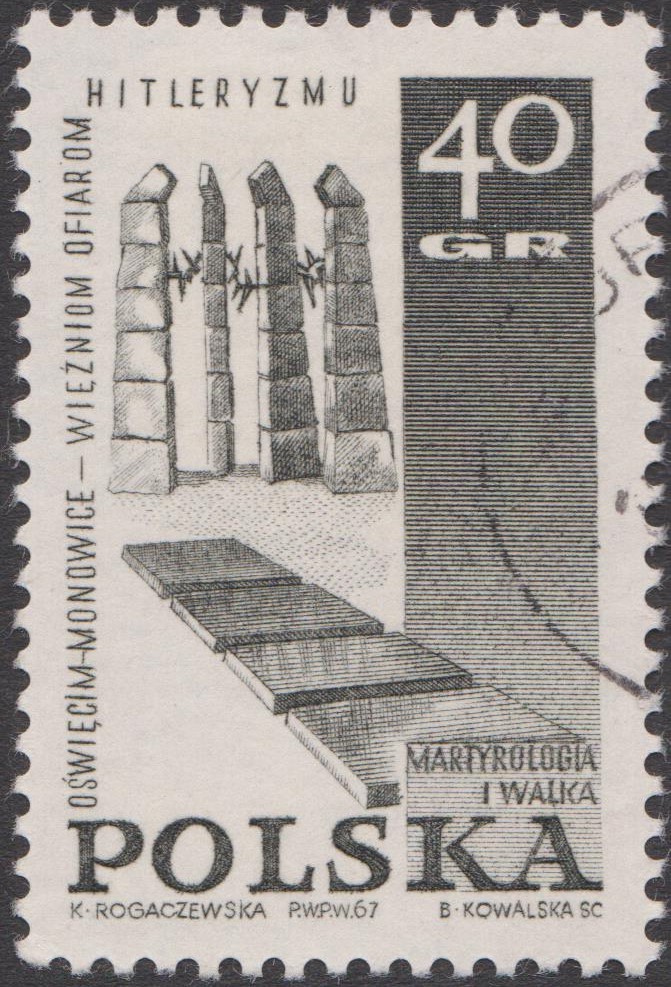 Dieses Postwertzeichen Polen MiNr. 1759 zeigt die Gedenkstätte Auschwitz-Monowitz: