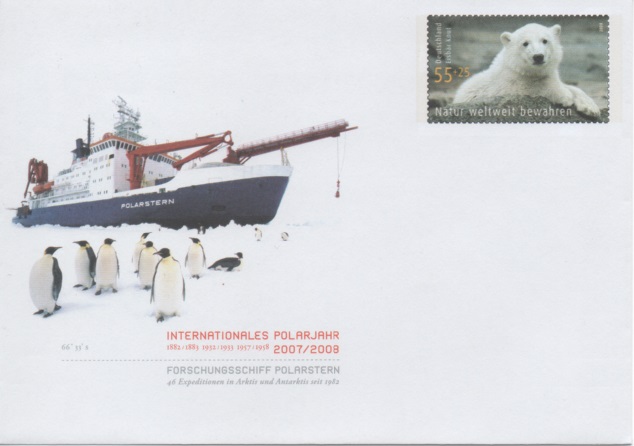 Zum Internationalen Polarjahr 2007 / 2008 erschien diese Ganzsache, die die FS POLARSTERN in der Antarktis zeigt.