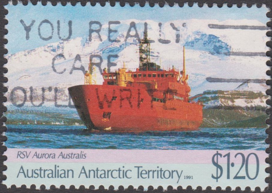 Die Aurora Australis dient auch als Versorgungsschiff für das von Australien beanspruchte Territorium in der Antarktis. Für gute Sichtbarkeit wurde sie mit einem Anstrich in hellen Orange versehen.