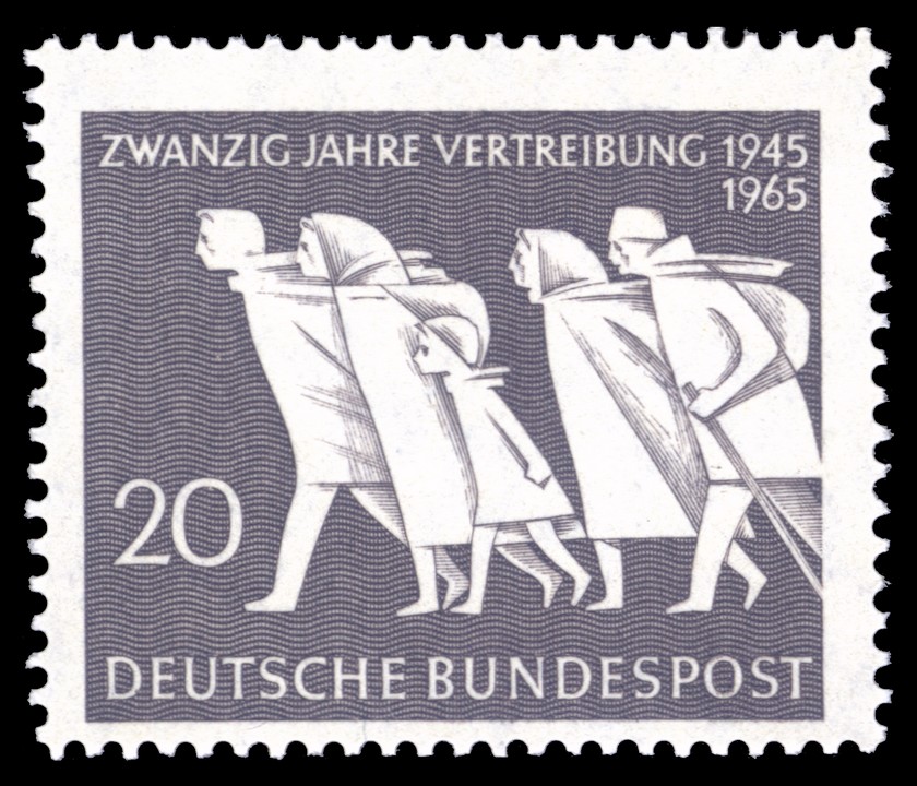 In Deutschland erschienen 1955 sowie 1965 Postwertzeichen, die die Vertreibung der Deutschen nach dem Zweiten Weltkrieg aus den Ostgebieten dokumentieren: