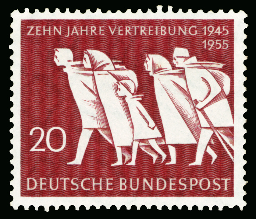 In Deutschland erschienen 1955 sowie 1965 Postwertzeichen, die die Vertreibung der Deutschen nach dem Zweiten Weltkrieg aus den Ostgebieten dokumentieren: