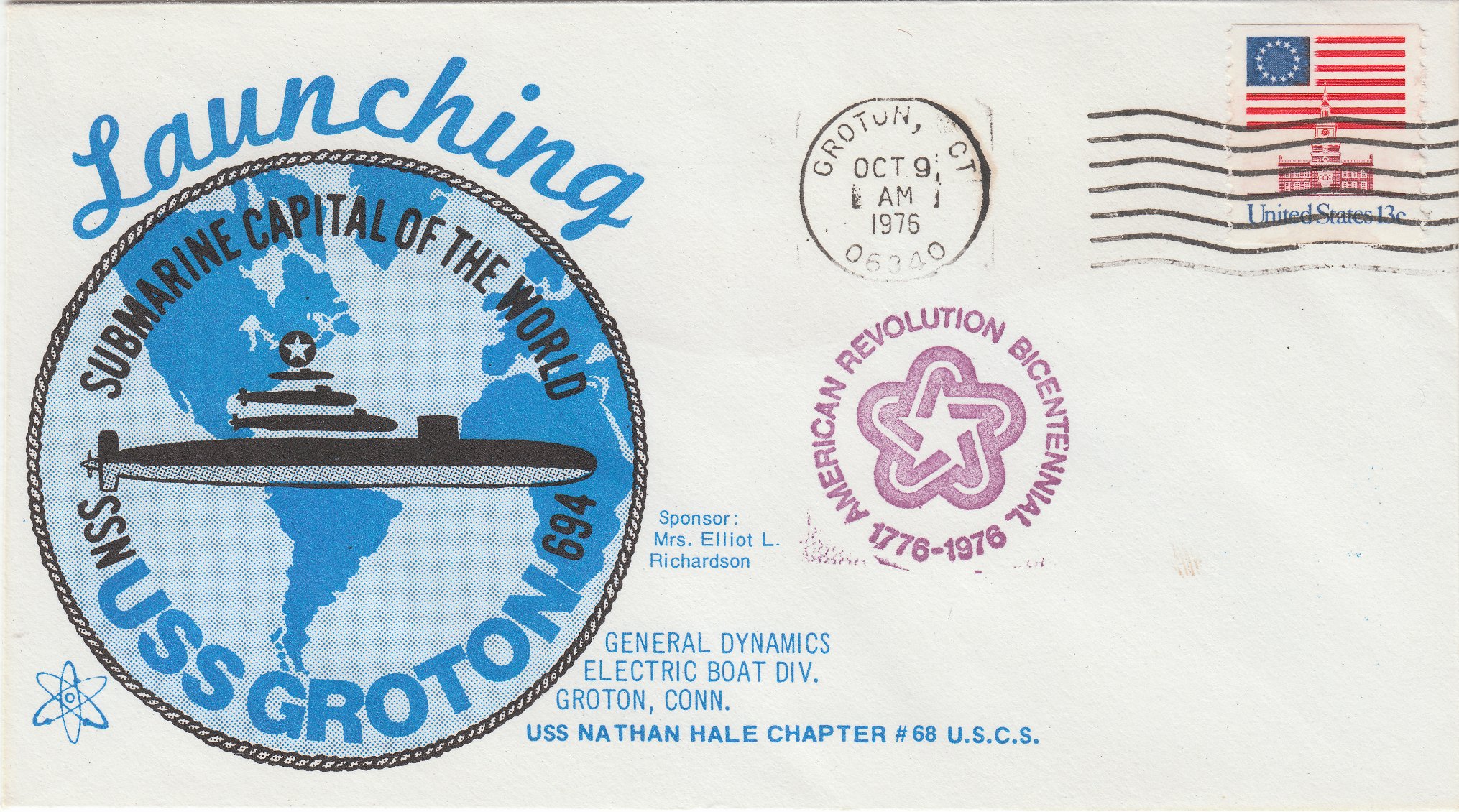 Der Stapellauf der USS GROTON (SSN-694) fand am 09.10.1976 in Groton, Connecticut statt, was dieser Beleg dokumentiert: