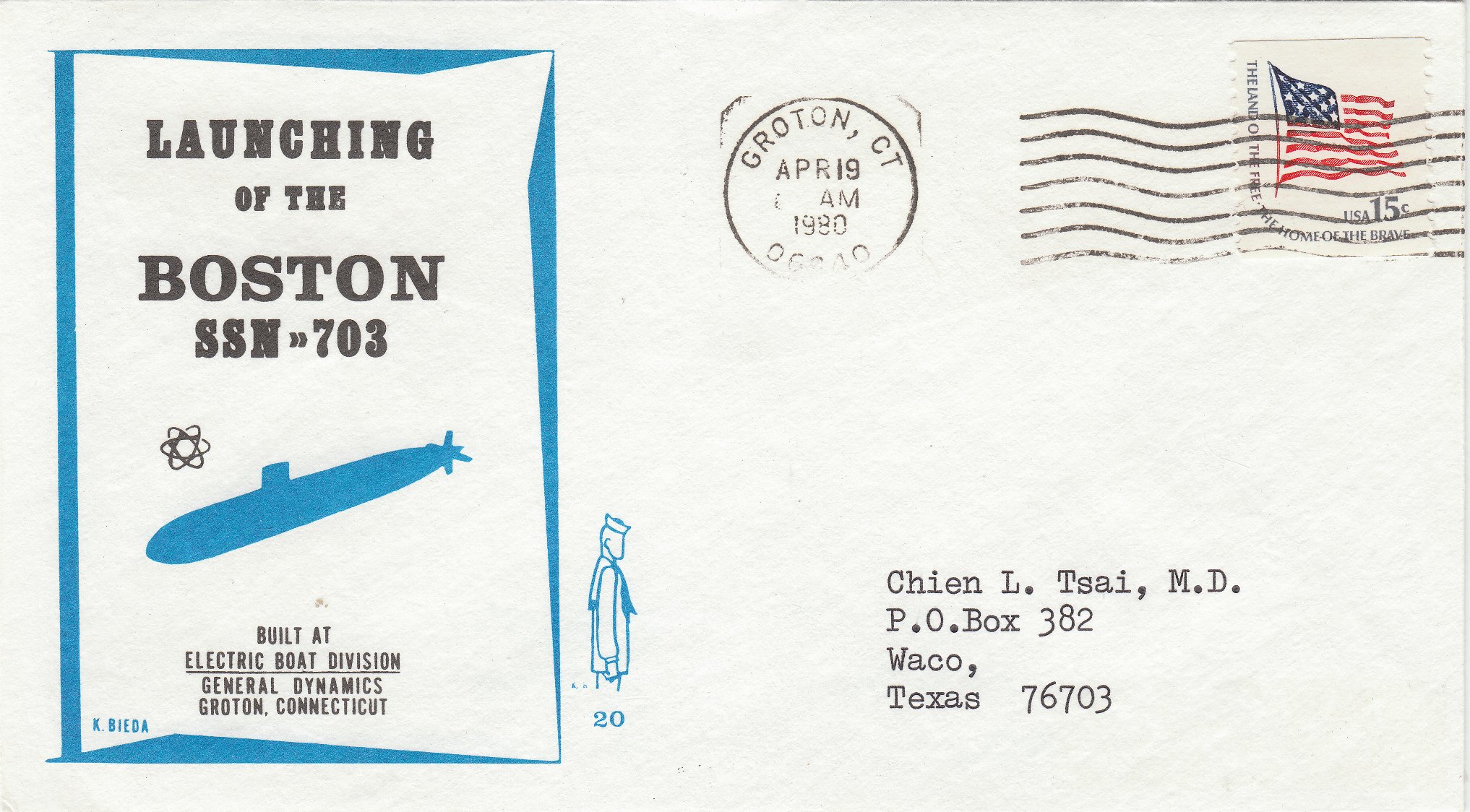Der Stapellauf der USS BOSTON (SSN-703) erfolgte am 19.04.1980 in Groton, Connecticut, was dieser Beleg dokumentiert: