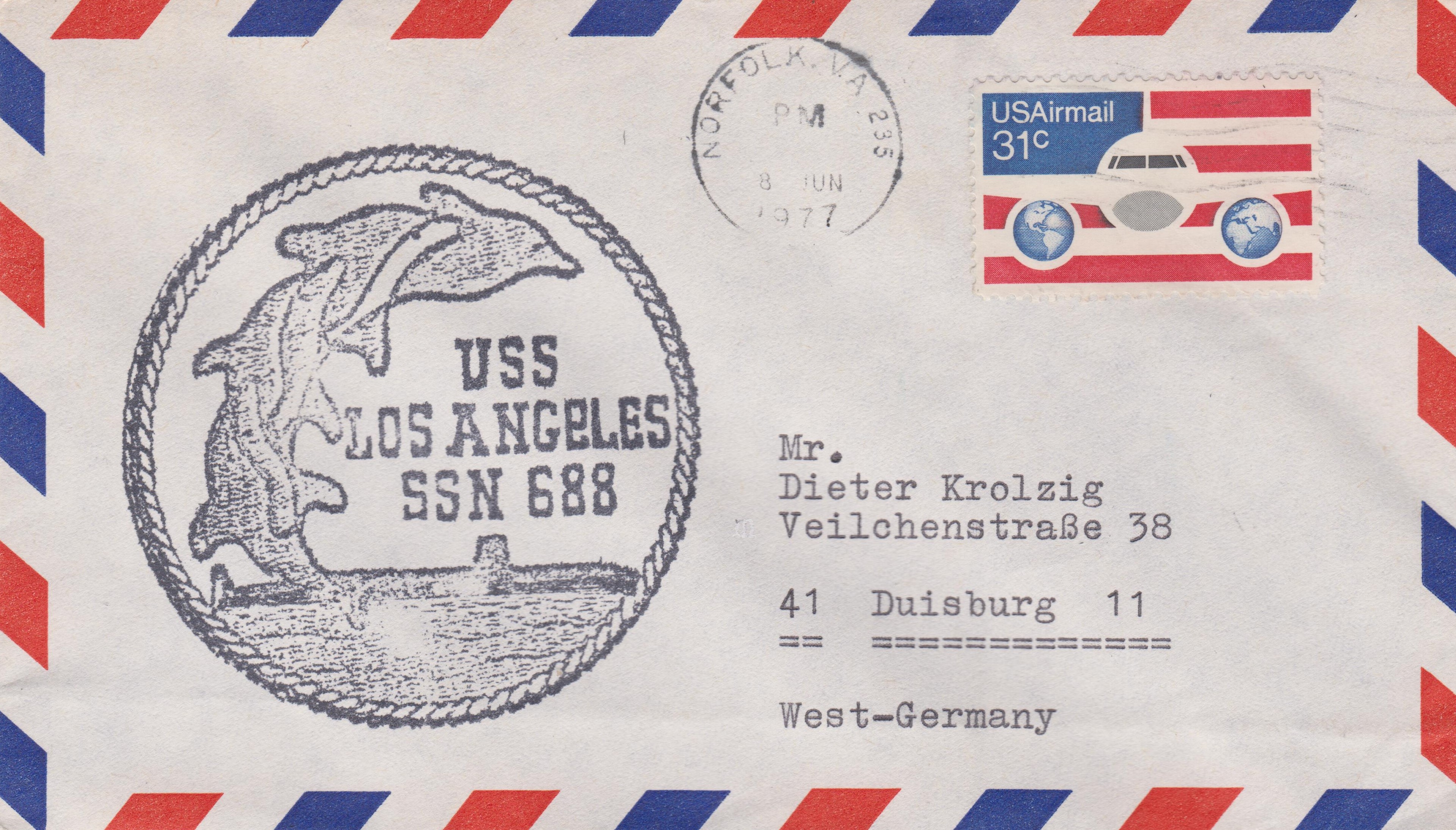Dieser hübsch illustrierte Beleg dokumentiert die Indienststellung der USS LOS ANGELES (SSN-688) am 13.11.1976: