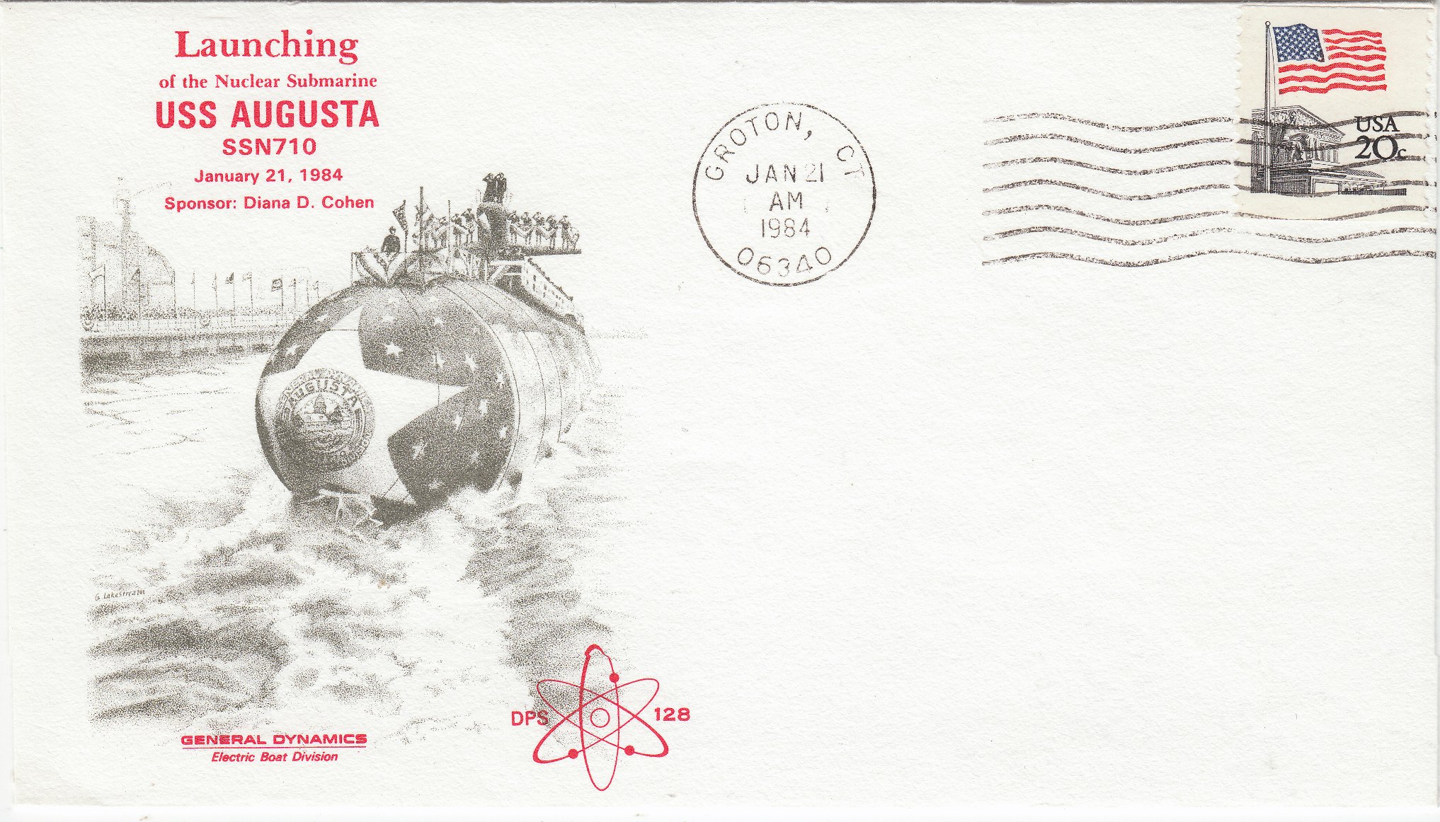 Der Stapellauf der USS AUGUSTA (SSN-710) fand am 21.01.1984 in Groton, Connecticut, statt, was dieser Beleg dokumentiert: