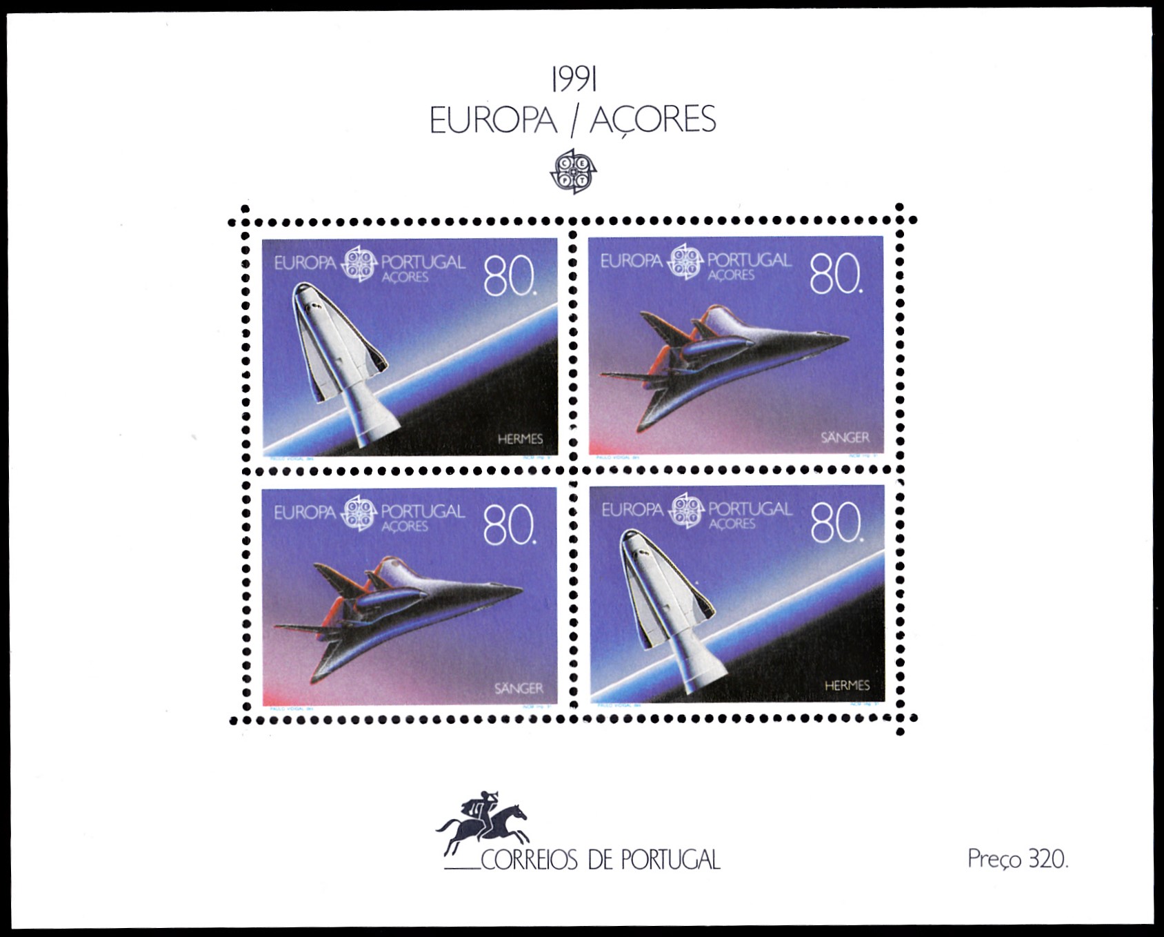 Auf einer Europamarke aus Türkisch-Zypern (MiNr 303) wird ein Modell der Raumfähre "Hermes" gezeigt.
