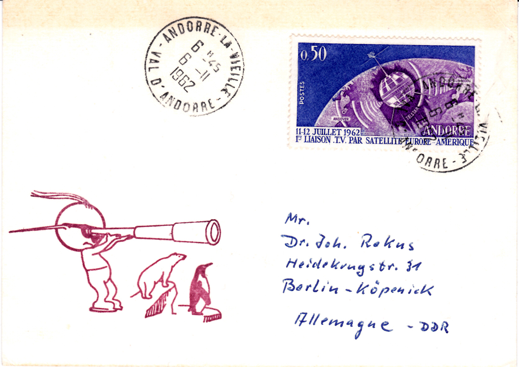 Bei der französischen Post in Andorra erschien zur 1. Fernseh-Direktübertragung Amerika - Europa durch "Telstar" eine Marke (MiNr 178) mit "Telstar" über einem Teil der Weltkugel mit der Empfangs- und der Sendestation Pleumeur-Bodou (Frankreich) und Andover (USA).
