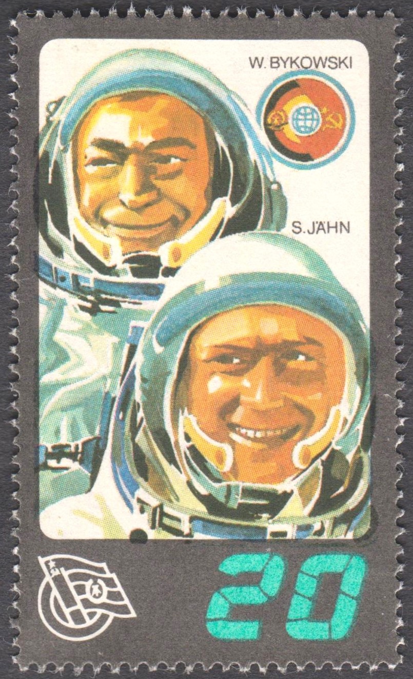 1981 erschien von der GDSF (= Gesellschaft für Deutsch-Sowjetische Freundschaft) im Rahmen einer Sondermarkenserie von 20 verschiedenen Spendenmarken "Weltraumforschung zum Nutzen der Menschheit" dieses Motiv, das 2 Kosmonauten zeigt: