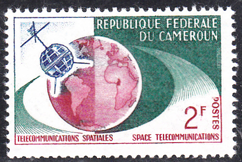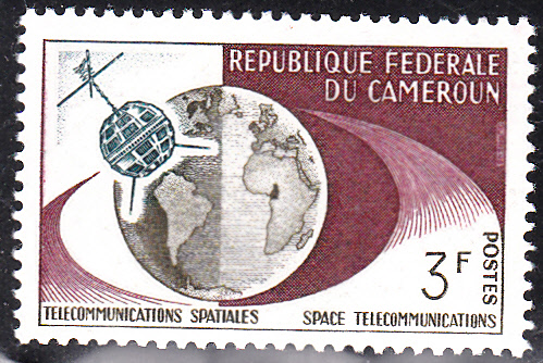 In Kamerun erschien zur 1. Fernseh-Direktübertragung Amerika - Europa durch "Telstar" eine Serie mit fünf bildgleichen Marken. Hier zeige drei der Marken, die sich lediglich in der Farbgestaltung unterscheiden.