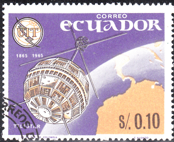 Aus einer Serie aus Ecuador zum Jubiläum "100 Jahre Internationale Fernmeldeunion (ITU)" stammt diese Marke (MiNr 1190) mit einem der Nachrichtensatelliten "Telstar".