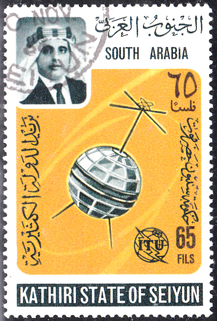 In Aden, Kathiri State of Seiyun (das war bis 1967ein Sultanat im heutigen Südjemen) erschien in einer Serie "100 Jahre Internationale Fernmeldeunion" auch eine Marke (MiNr 84 A) mit einem Nachrichtensatelliten vom Typ Telstar.