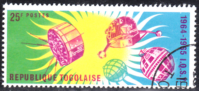 In Togo erschien in einer Serie "Internationale Jahre der ruhigen Sonne" auch eine Marke (MiNr 447 A), die auch einen Nachrichtensatelliten vom Typ Telstar (rechts) zeigt.