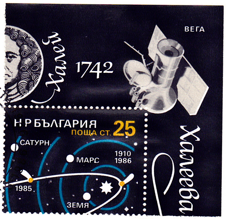 In Bulgarien erschien zum Thema "Halleyscher Komet" 1986 ein Block mit vier Marken. Die vier Markenbilder ergeben zusammen ein Gesamtbild mit der Flugbahn des Kometen in unserem Sonnensystem. Auf dem Blockrand öberhalb der rechten oberen Marke des Blockes ist die Vegasonde abgebildet.