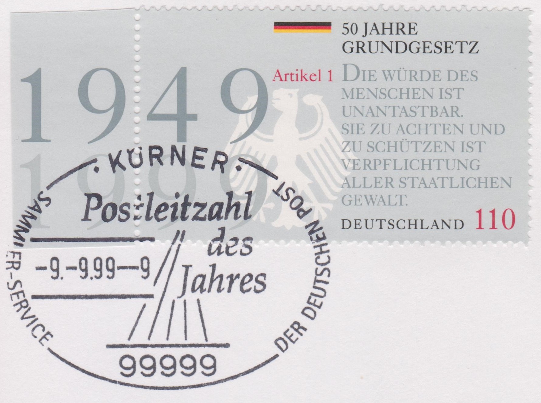 9.9.99 99999 KÖRNER = Postleitzahl des Jahres: