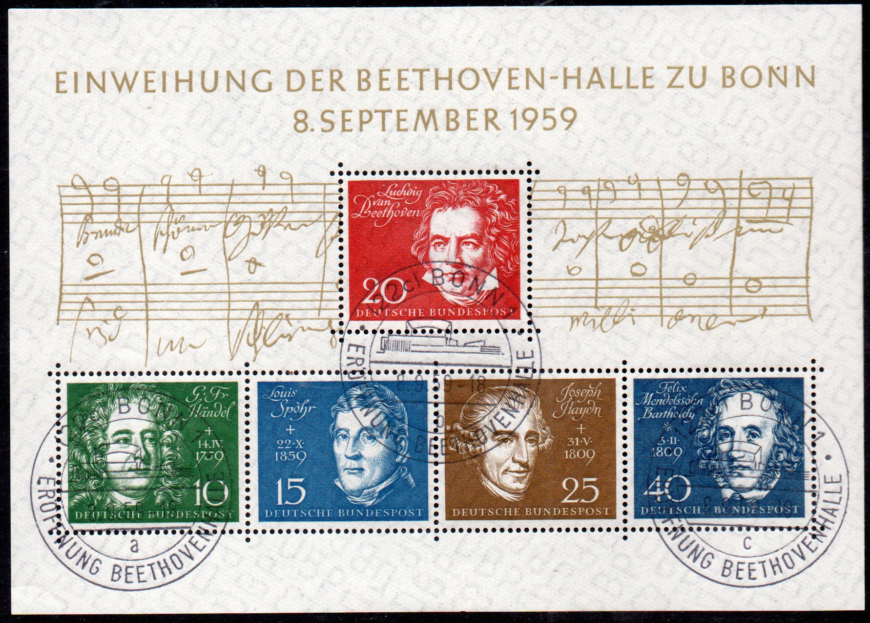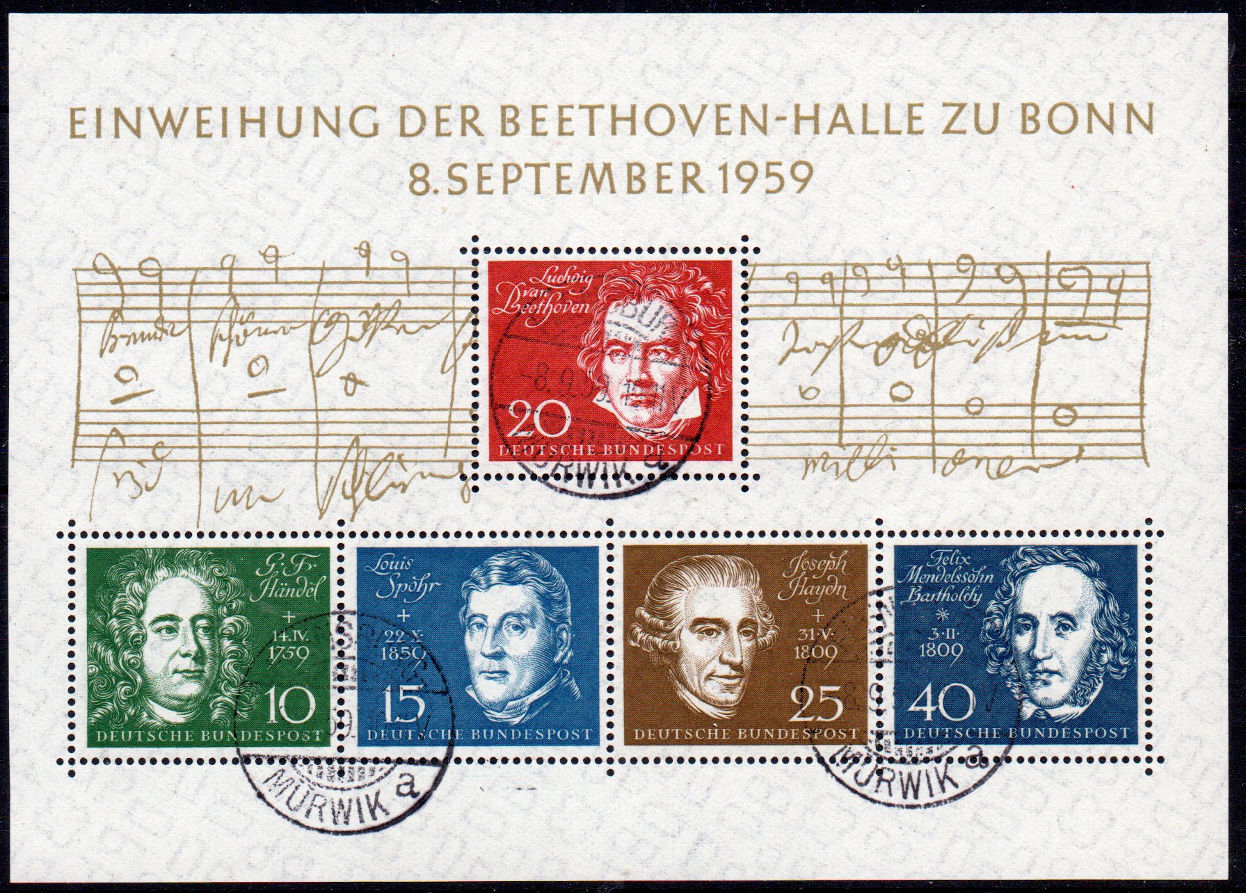 Am 08. September 1959 erschien der 1. Block der Bundesrepublik zur Einweihung der Beethovenhalle in Bonn.