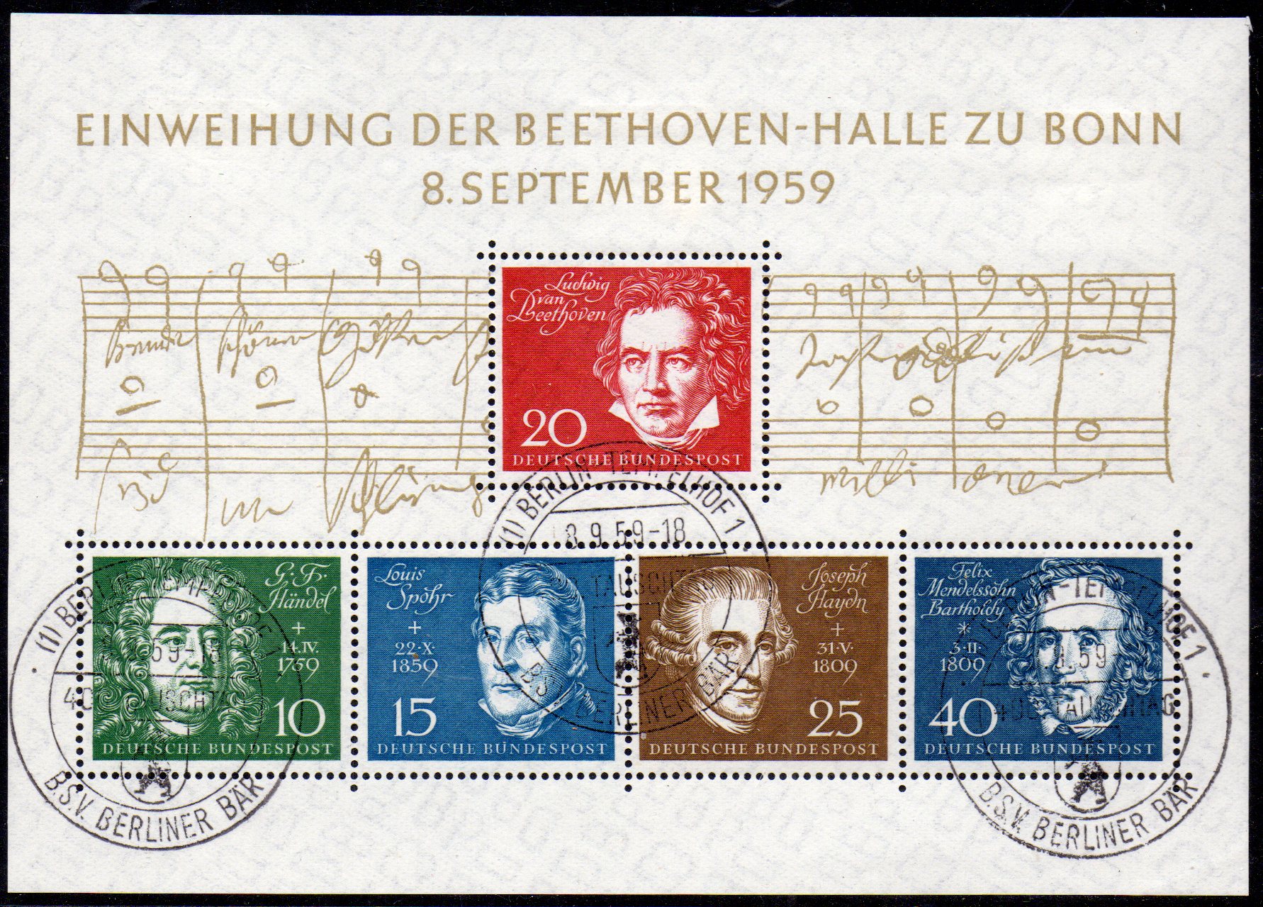 Der Briefmarkensammlerverein "B.S.V. Berliner Bär" beantragte zum 400. Tauschtag einen Sonderstempel, der am Erstausgabetag des Beethovenblocks am Dienstag, dem 8. September 1959 zum Einsatz kam.