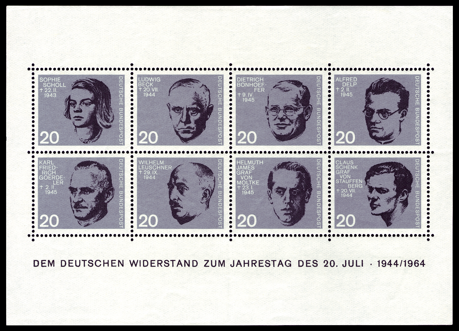 In Erinnerung an das Attentat auf Adolf Hitler am 20. Juli 1944 erschien 1964 der als Block 3 gelistete Block.