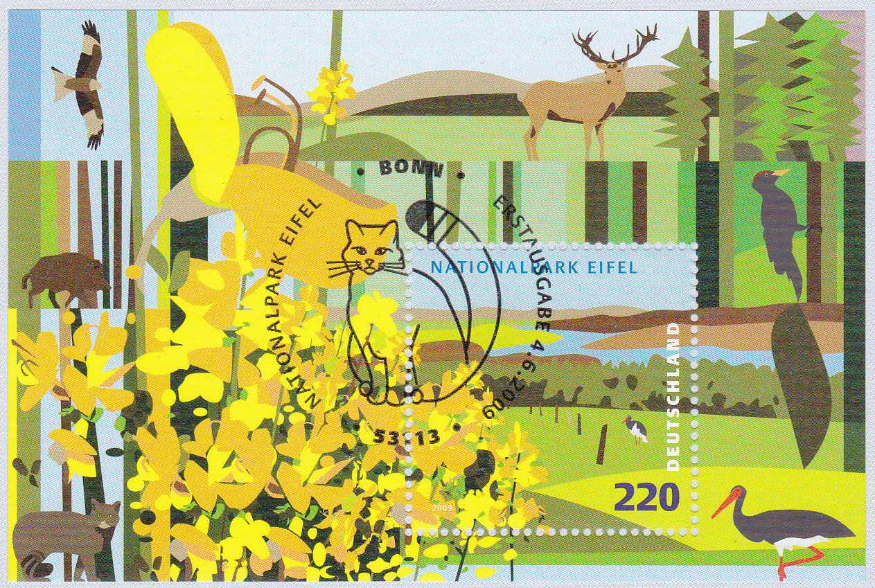 Dieser Block "Deutsche National- und Naturparks - Nationalpark Eifel" (MiNr Block 74) ist mit dem Ersttagsonderstempel Bonn gestempelt.