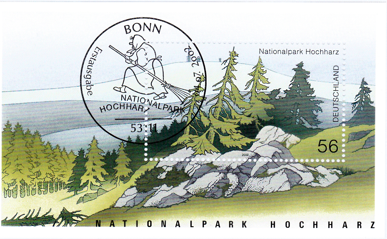 Dieser Block (MiNr Block 59) "Nationalpark Hochharz" ist gestempelt mit dem Ersttagssonderstempel Bonn.