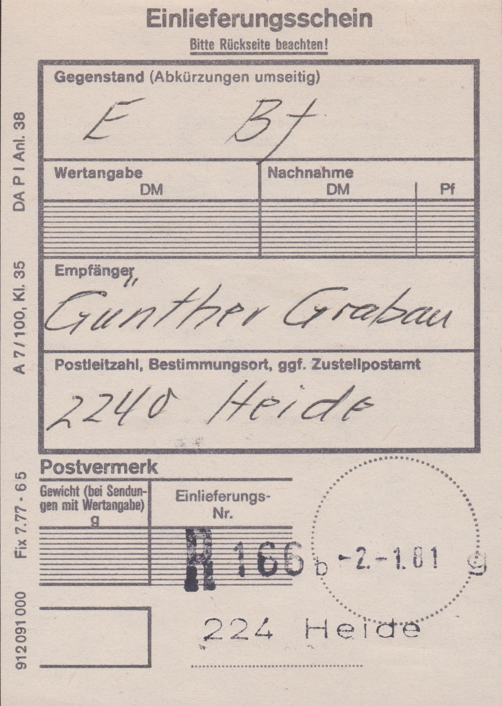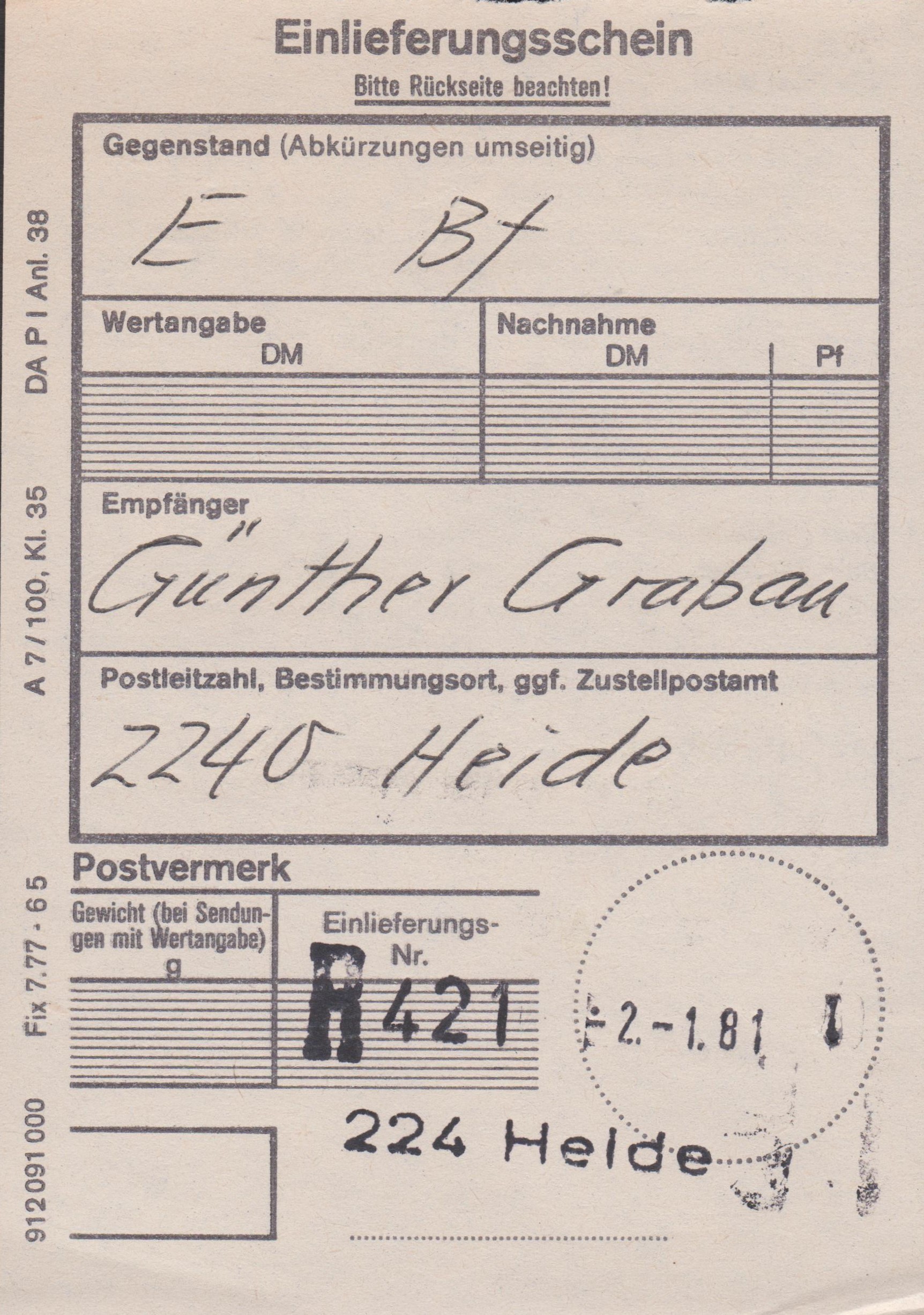 Für eine "Drucksache" betrug das Porto am 02.01.1981 wie bereits gezeigt 40 Pf.