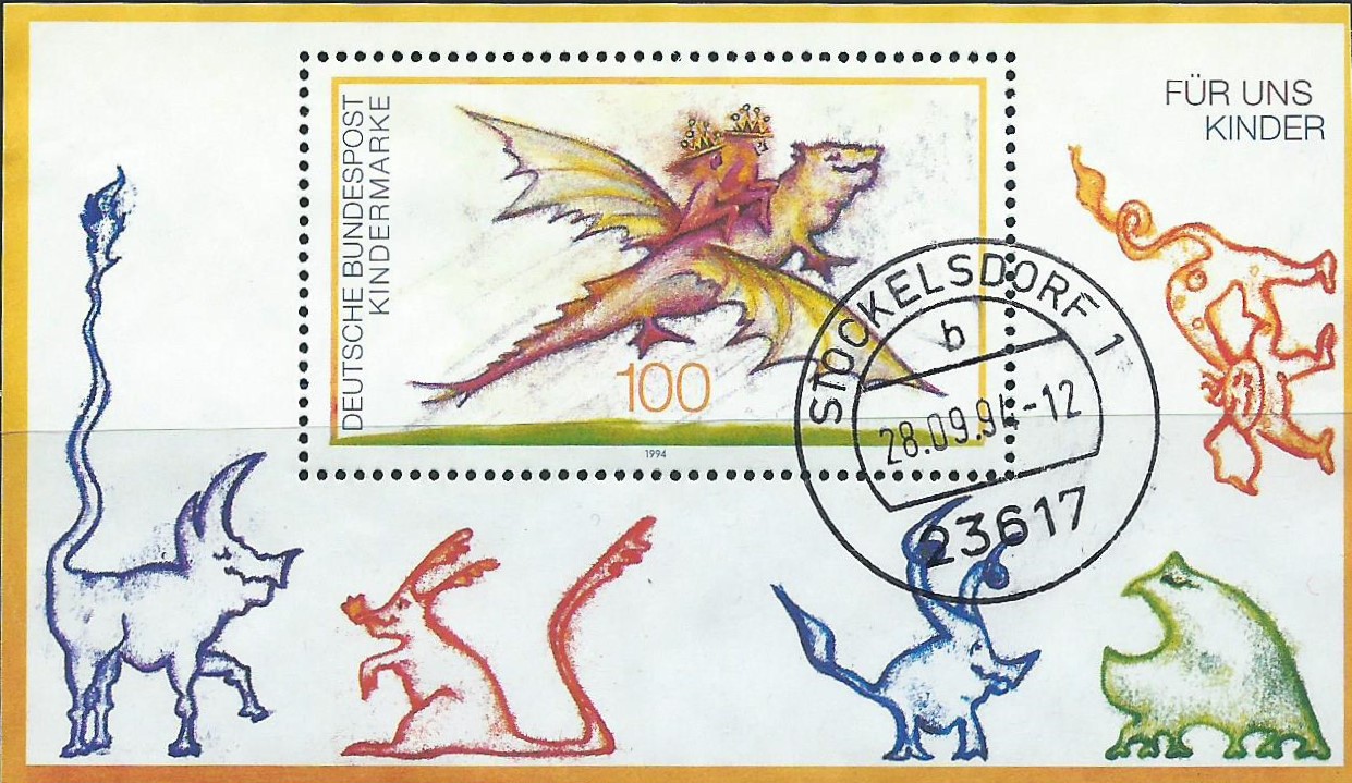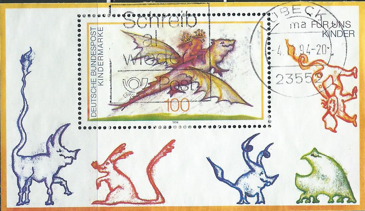 Mit dem Block 30 als Beispiel zeige ich noch eine Möglichkeit, wie man auch eine Blocksammlung gestalten kann: Auf Grund der Größe passt der komplette Maschinenstempel auf den Block. Wenn man zum Beispiel belegen möchte, dass der Block auch wirklich mal echt gelaufen ist, hat man so den perfekten Nachweis. Hier einmal der Maschinenstempel mit Werbeeinsatz von Lübeck 1 vom 4.11.94: