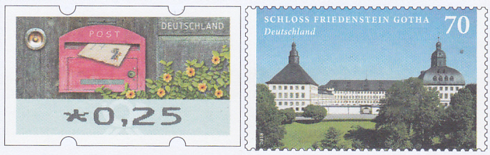 Zum Jubiläum 250 Jahre Gotha" erschien bei der Deutschen Post eine Gedenk-Ganzsache mit dem Werteindruck im Muster der Marke Schloss Friedenstein, Gotha (MiNr 3366) und einer Automatenmarke zu 0,10€.