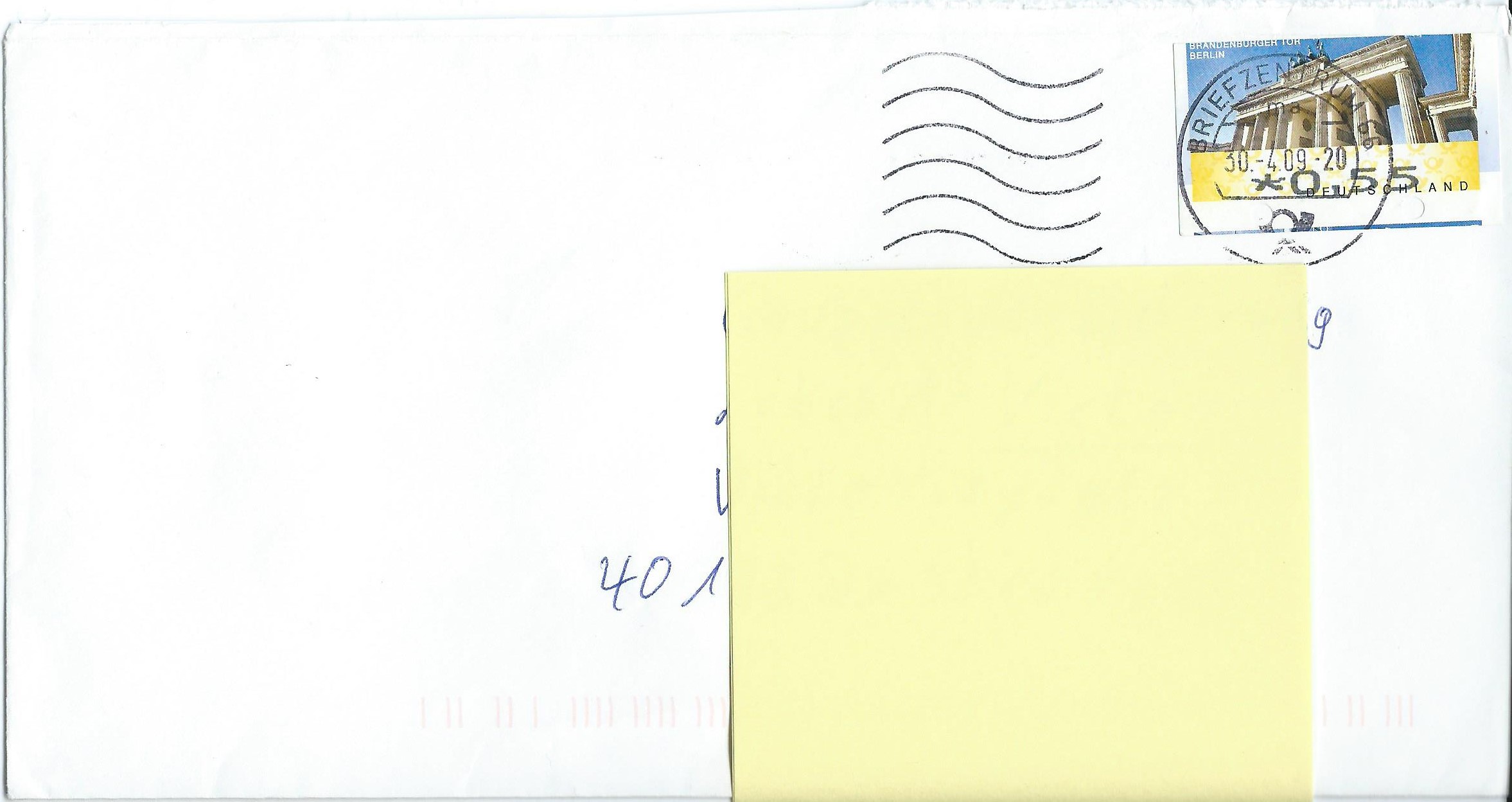 Eine weitere 55 ct-Marke, Maschinenstempel Briefzentrum 04 vom 22.3.09,