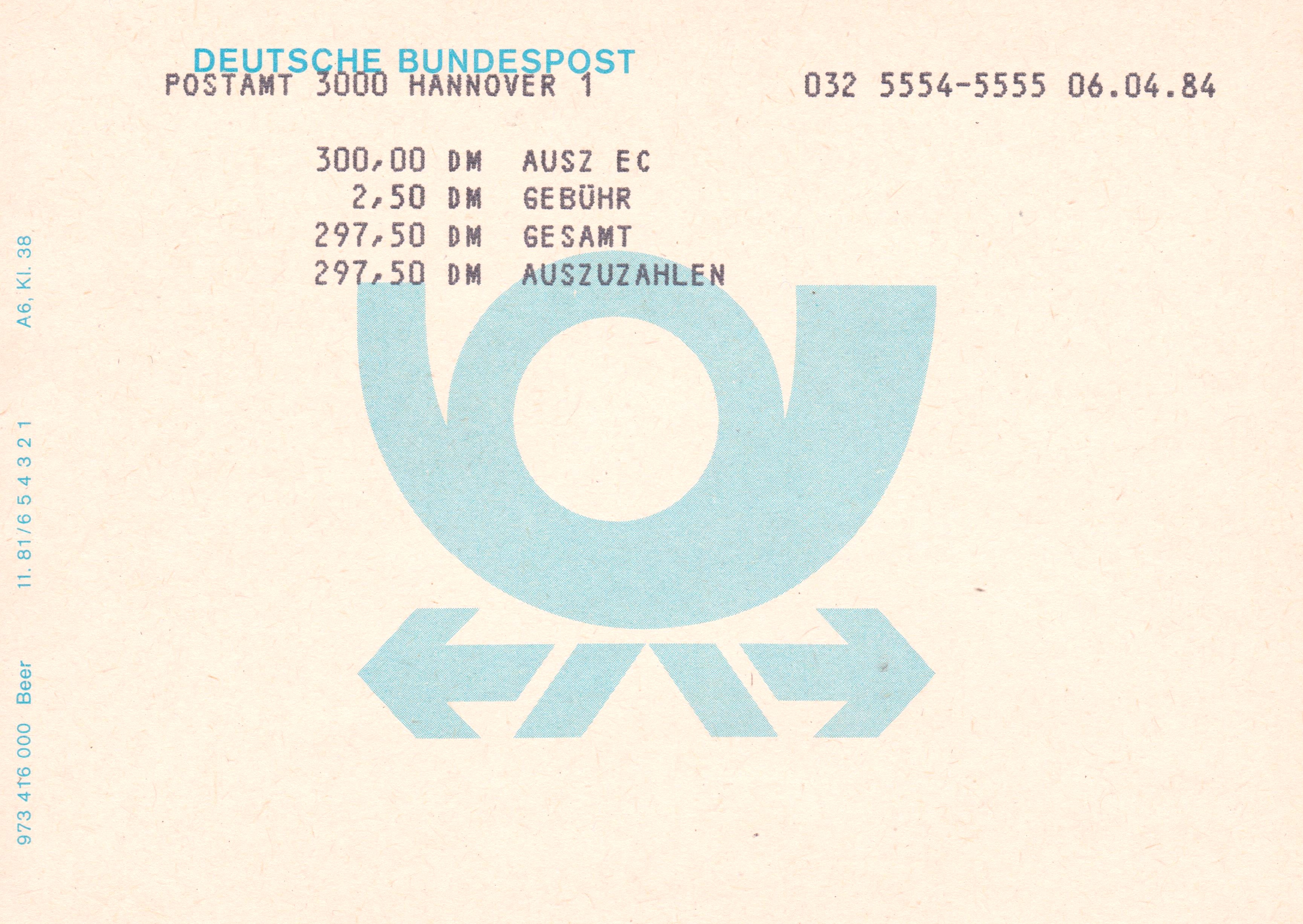 Foren-Übersicht Fragen und Diskussion Deutschland Deutschland ab 1945 Bundesrepublik Deutschland DEUTSCHE BUNDESPOST - Formular AUSZAHLUNGEN